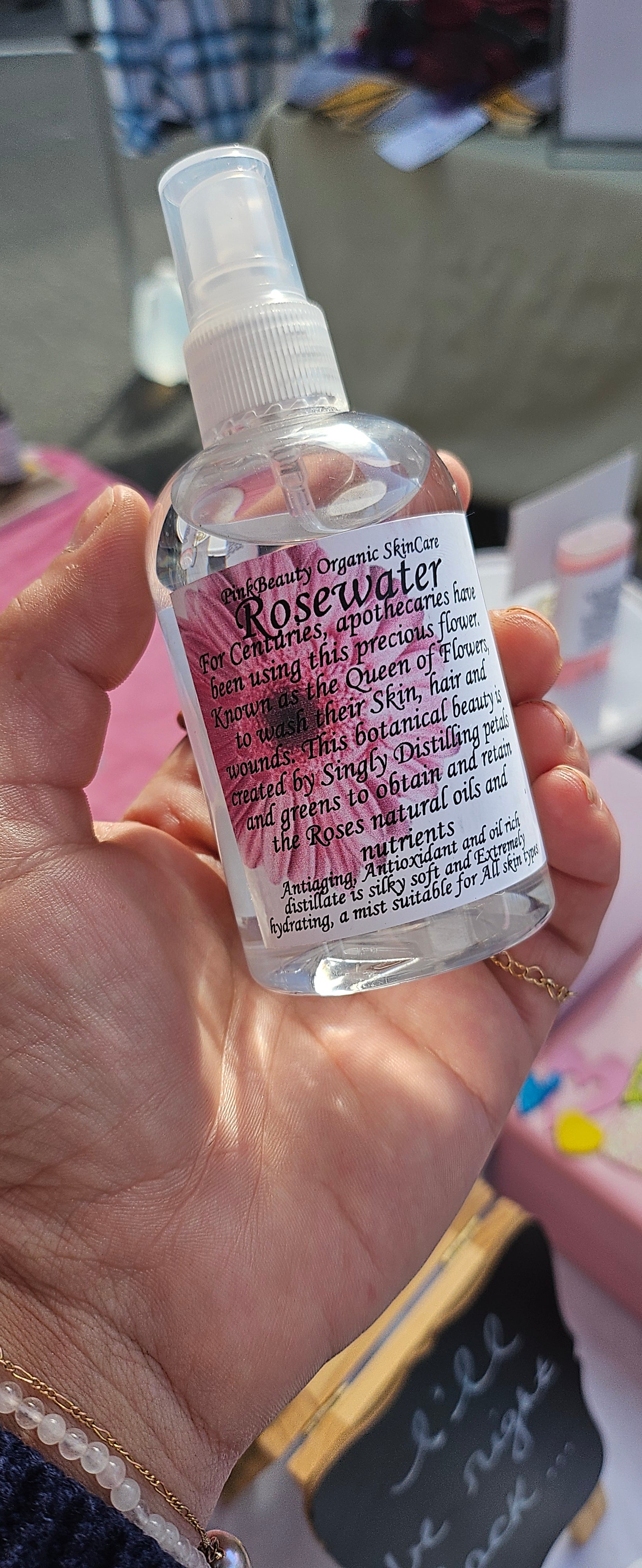 Rosewater hydrates the skin, reduces redness drastically, can reduce the appearance of broken capillaries, cleans & shrinks pores, brightens the skins complexion with a ph level of 4.5 as mentioned all skin can reap the benefits Rosewater can be used to brighten the skins pigmentations too. It can be used to unclog & reduce pore appearance.