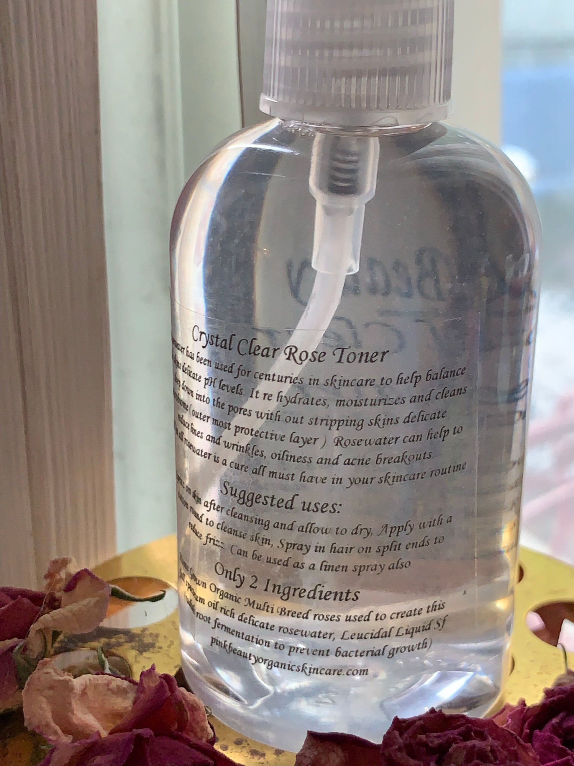 It’s common to double or even triple distill rosewater which you may notice doesn’t have that natural rose scent. It’s more of a water then a hydrating serum/toner. Leaving all the nourishing rose absolute oils in my rosewater guarantees the user rapid results.