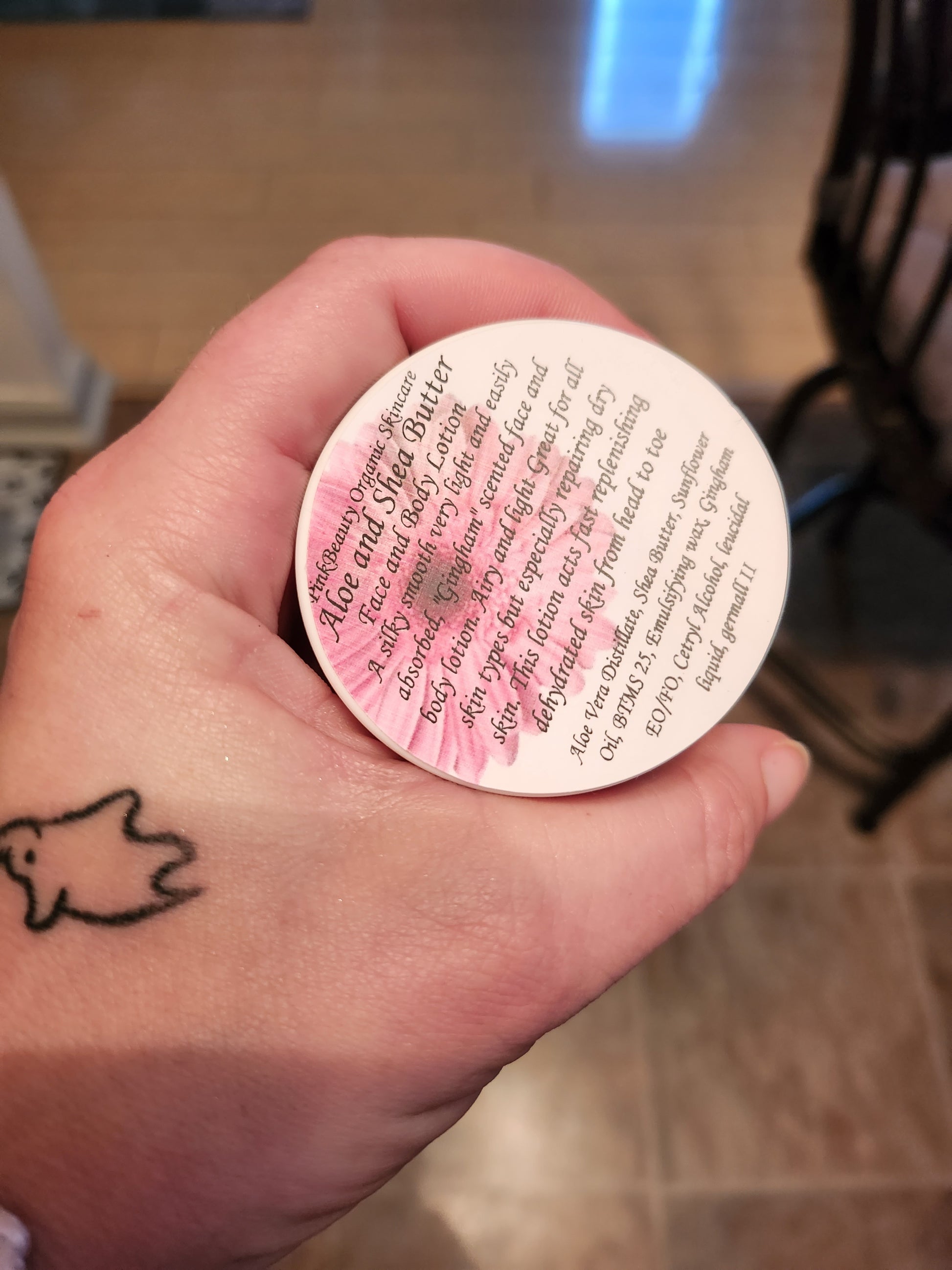 This cream is insanely moisturizing as it’s made primarily from Aloe Vera. Aloe oil & water make up this delicious watermelon and apple (Gingham) scented lightweight cream.