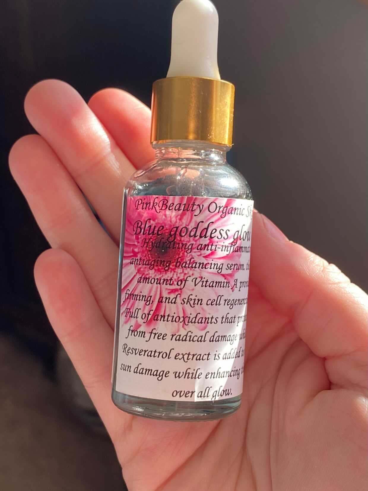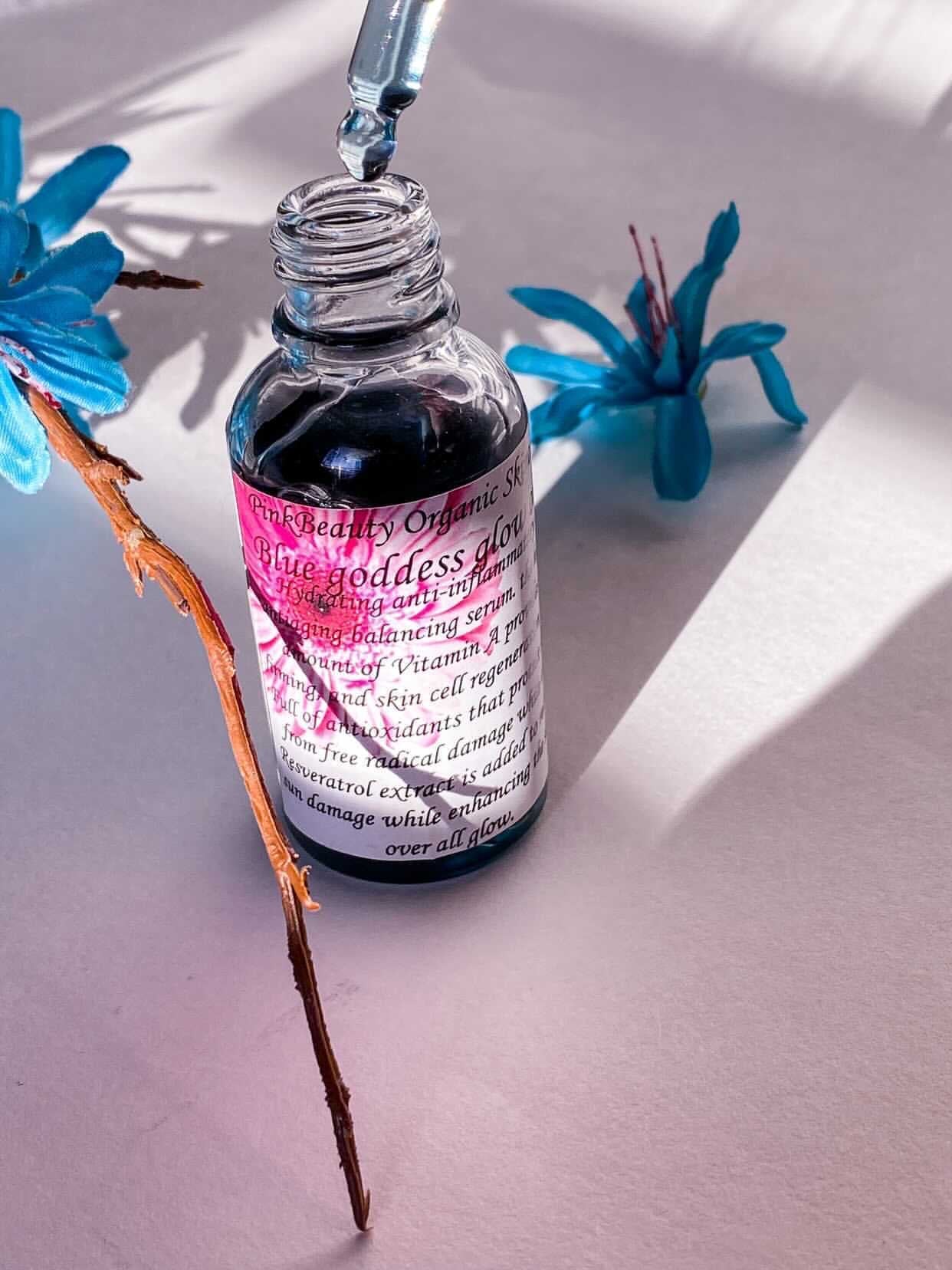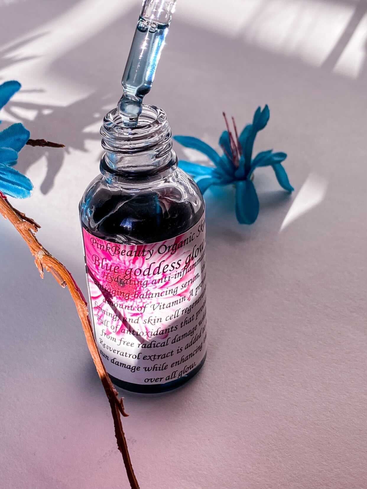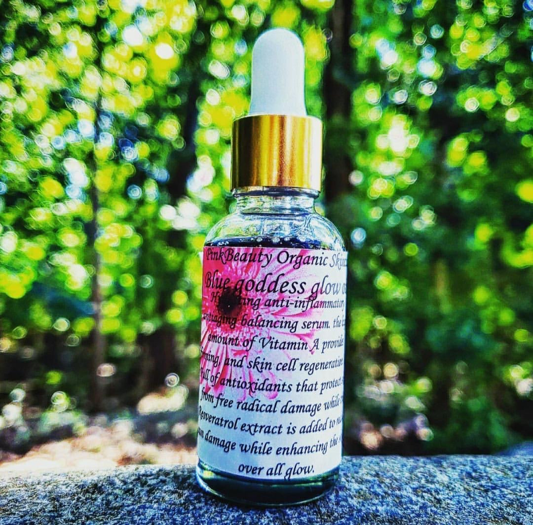Hydrating anti-inflammatory Antiaging Balancing Serum with a High amount of vitamin A (retinol) provides firming skin cell regeneration full of antioxidants that protect skin from free radical damage; while the resveratrol extract is added to reduce sun damage while enhancing the skins over all glow. My blue goddess oil is best for those considered to have problems with their skin like blemishes acne cystic acne adult acne & over active sebaceous glands!! This serum helps your skin fight for itself! Great for AGE 30+