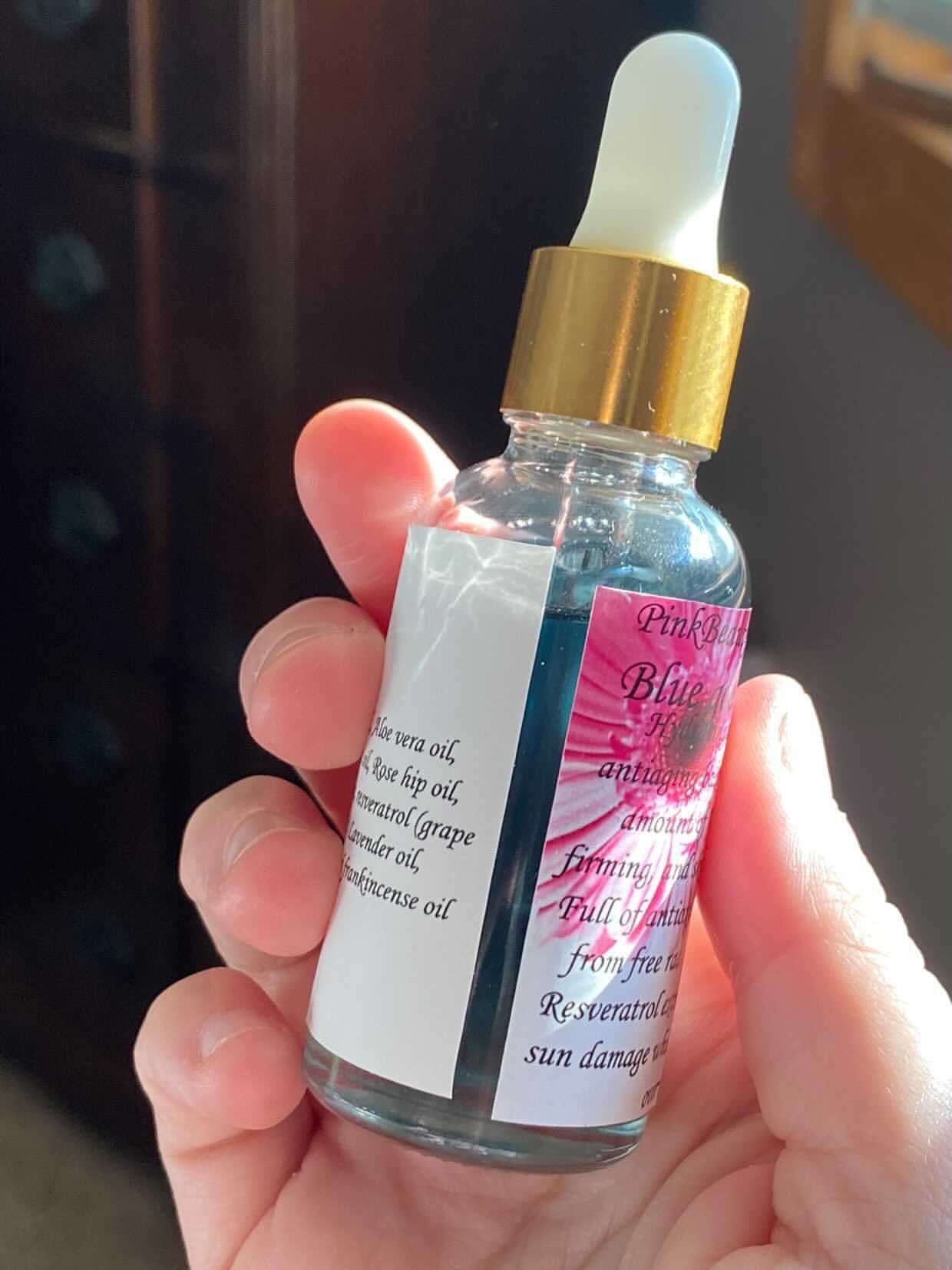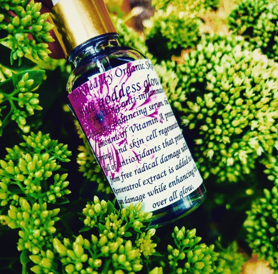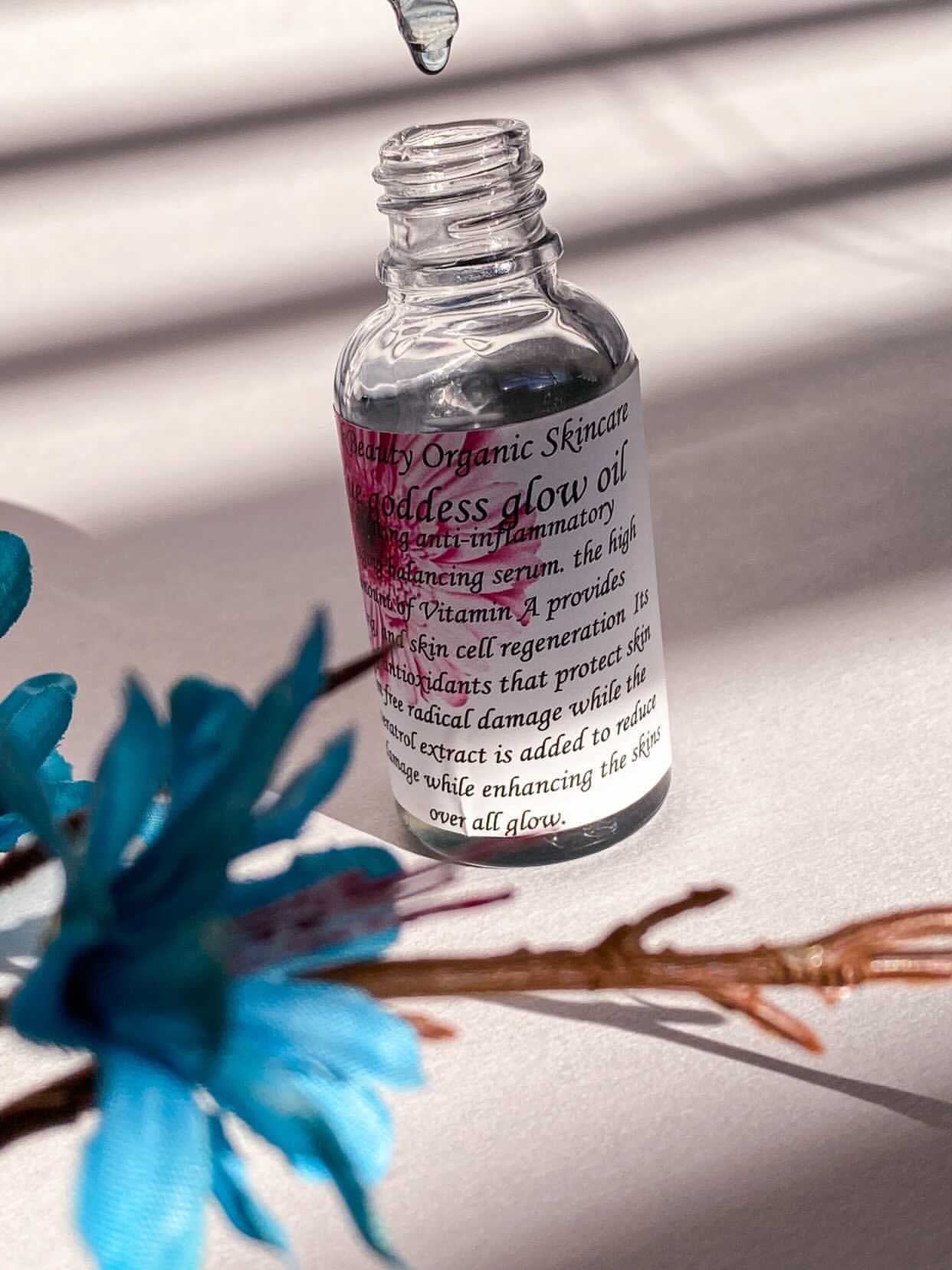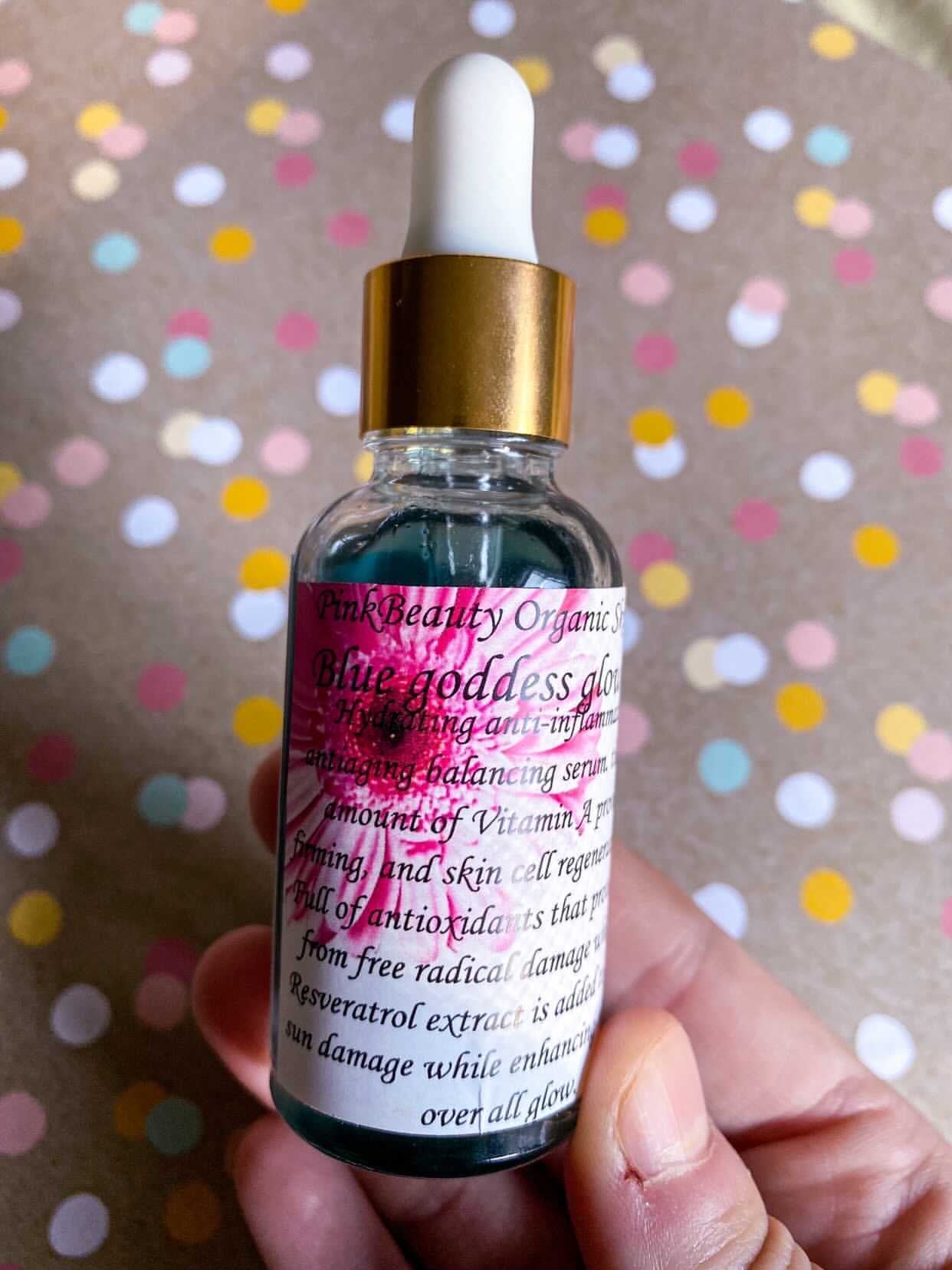 Hydrating anti-inflammatory Antiaging Balancing Serum with a High amount of vitamin A (retinol) provides firming skin cell regeneration full of antioxidants that protect skin from free radical damage; while the resveratrol extract is added to reduce sun damage while enhancing the skins over all glow. My blue goddess oil is best for those considered to have problems with their skin like blemishes acne cystic acne adult acne & over active sebaceous glands!! This serum helps your skin fight for itself! Great for AGE 30+
