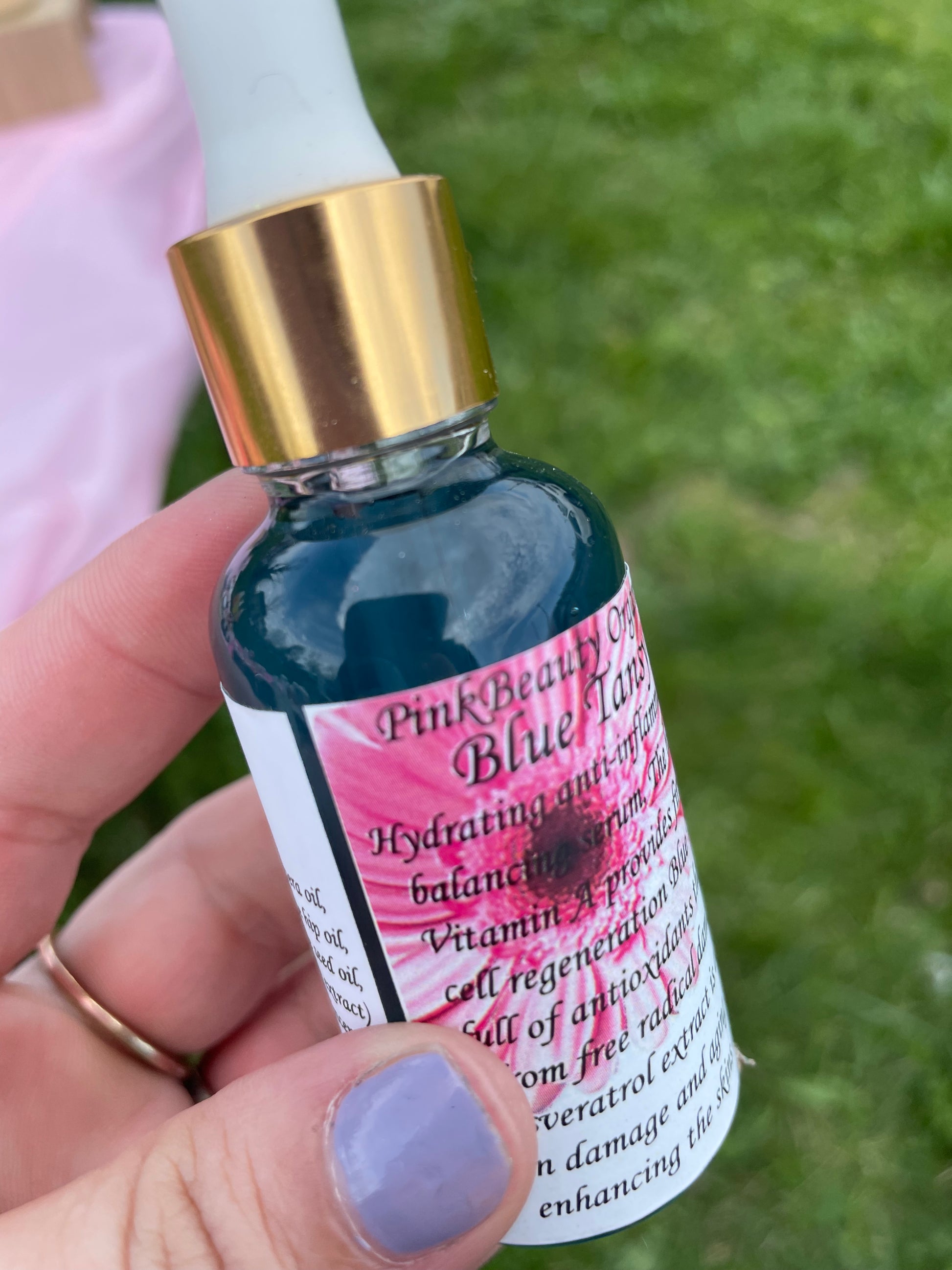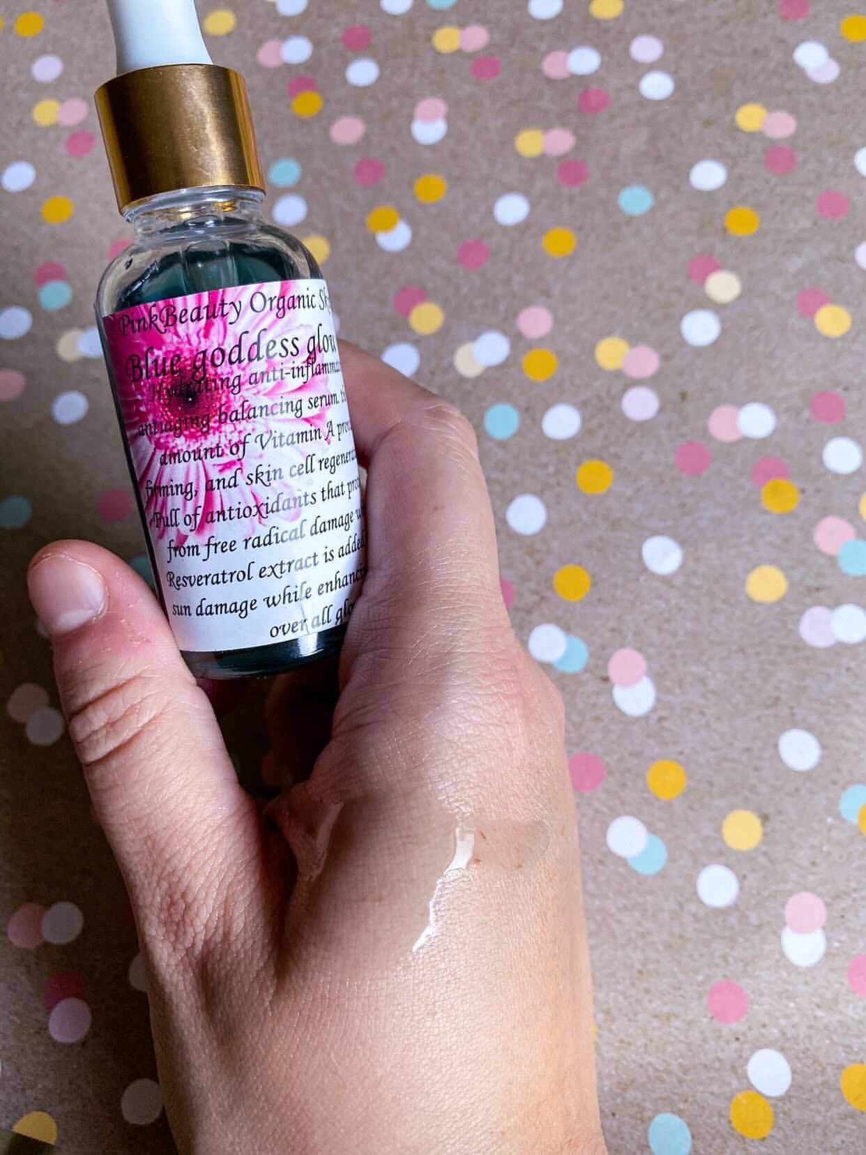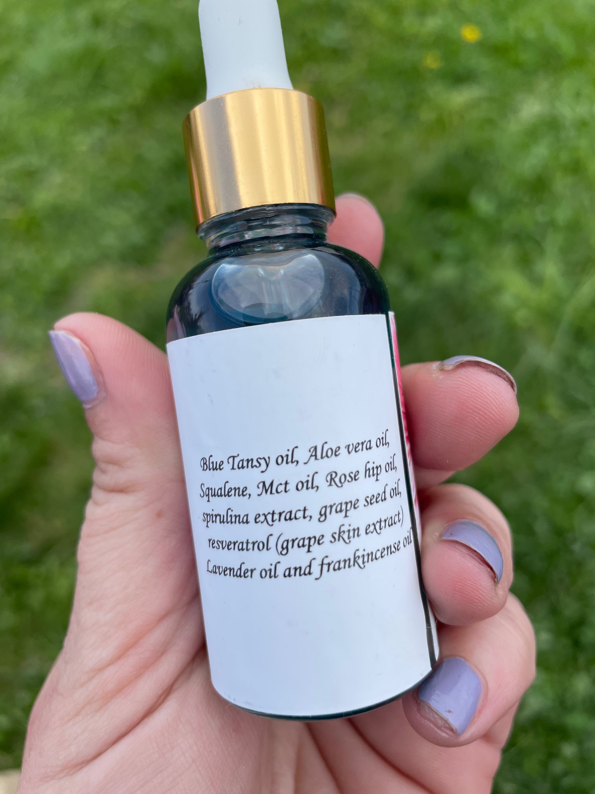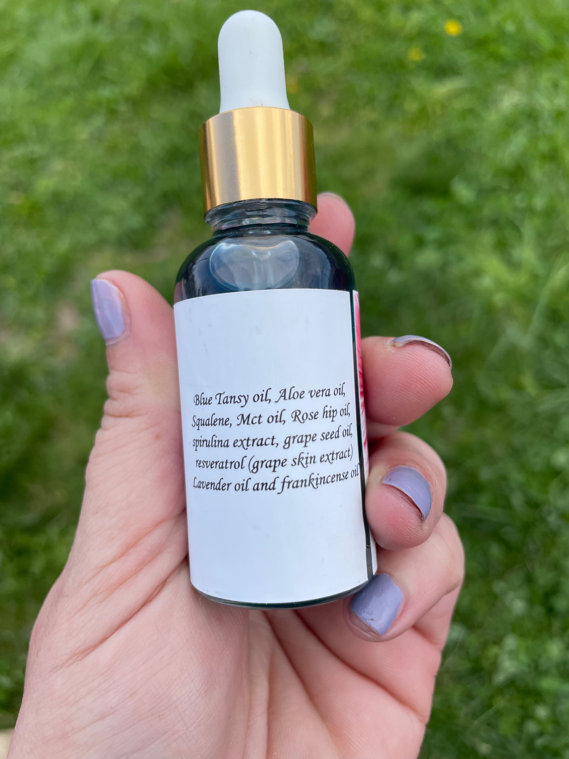 Hydrating anti-inflammatory Antiaging Balancing Serum with a High amount of vitamin A (retinol) provides firming skin cell regeneration full of antioxidants that protect skin from free radical damage; while the resveratrol extract is added to reduce sun damage while enhancing the skins over all glow. My blue goddess oil is best for those considered to have problems with their skin like blemishes acne cystic acne adult acne & over active sebaceous glands!! This serum helps your skin fight for itself! Great for AGE 30+