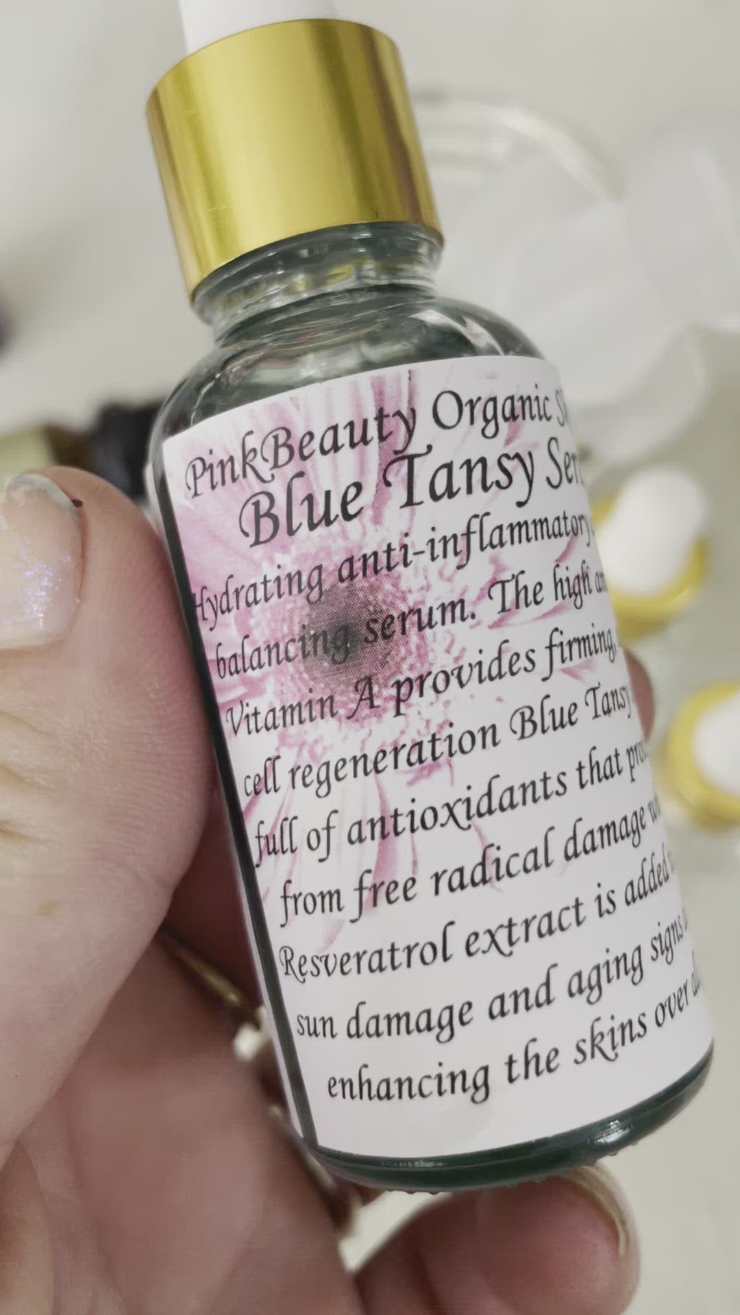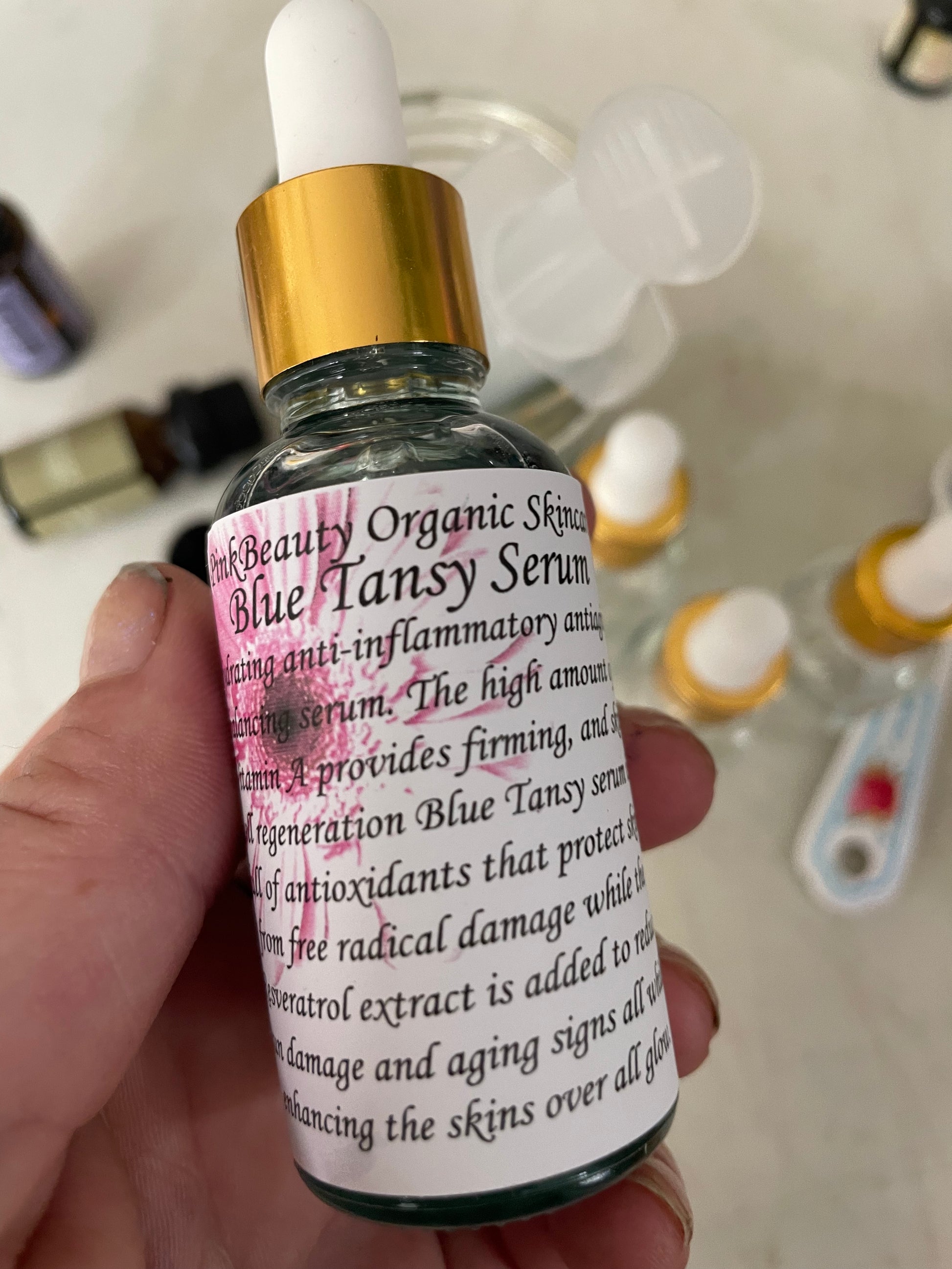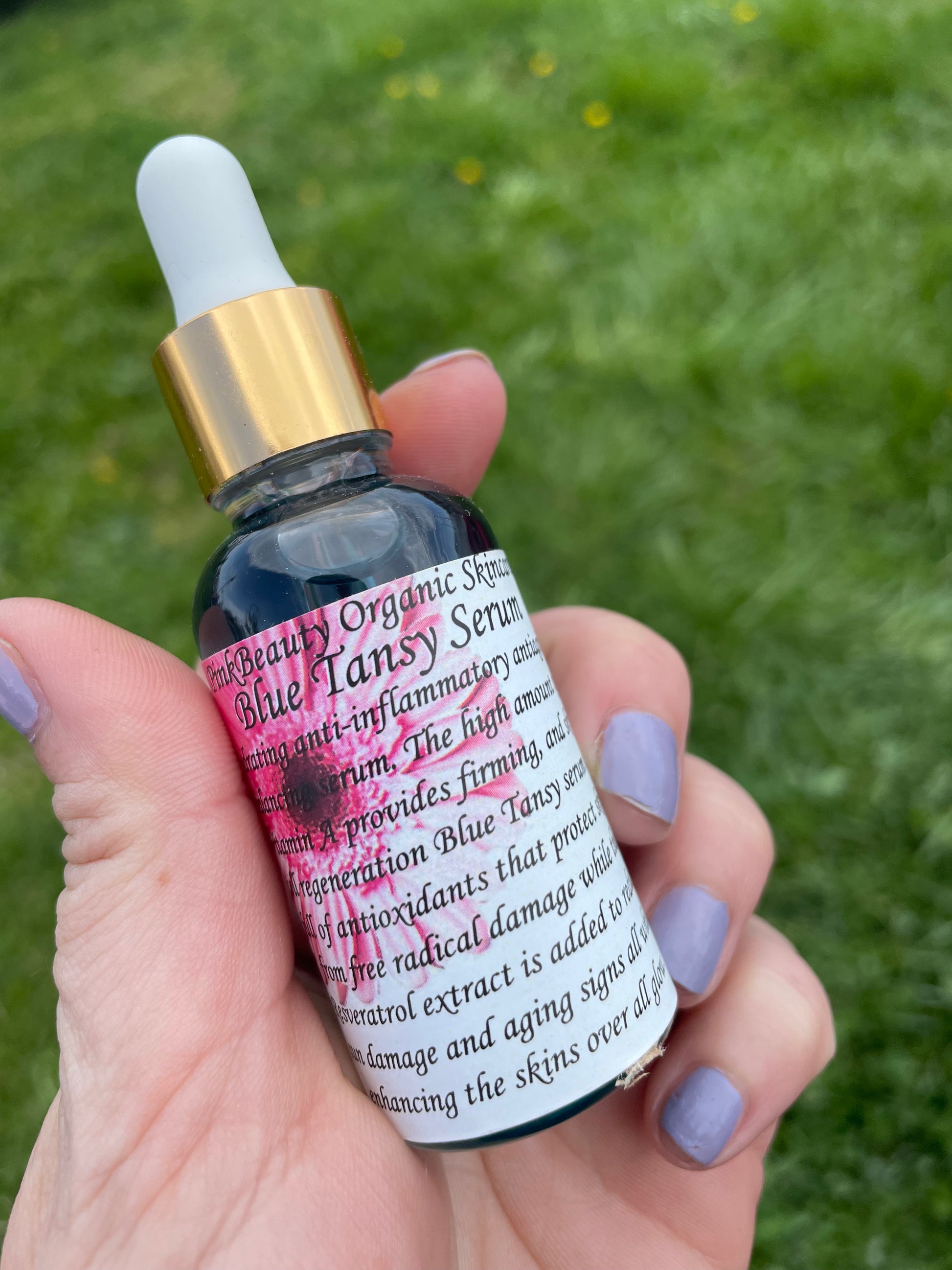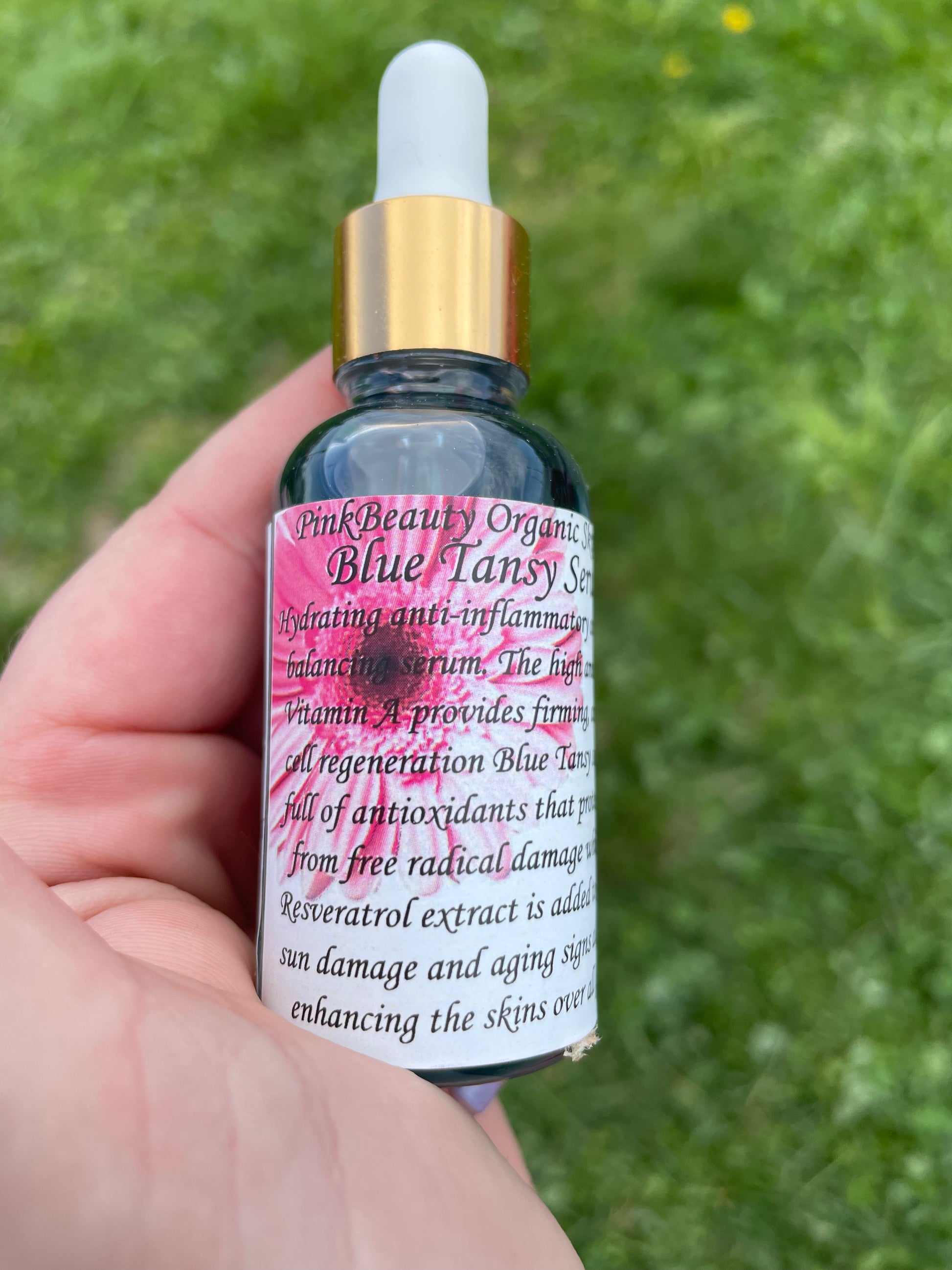 Hydrating anti-inflammatory Antiaging Balancing Serum with a High amount of vitamin A (retinol) provides firming skin cell regeneration full of antioxidants that protect skin from free radical damage; while the resveratrol extract is added to reduce sun damage while enhancing the skins over all glow. My blue goddess oil is best for those considered to have problems with their skin like blemishes acne cystic acne adult acne & over active sebaceous glands!! This serum helps your skin fight for itself! Great for AGE 30+
