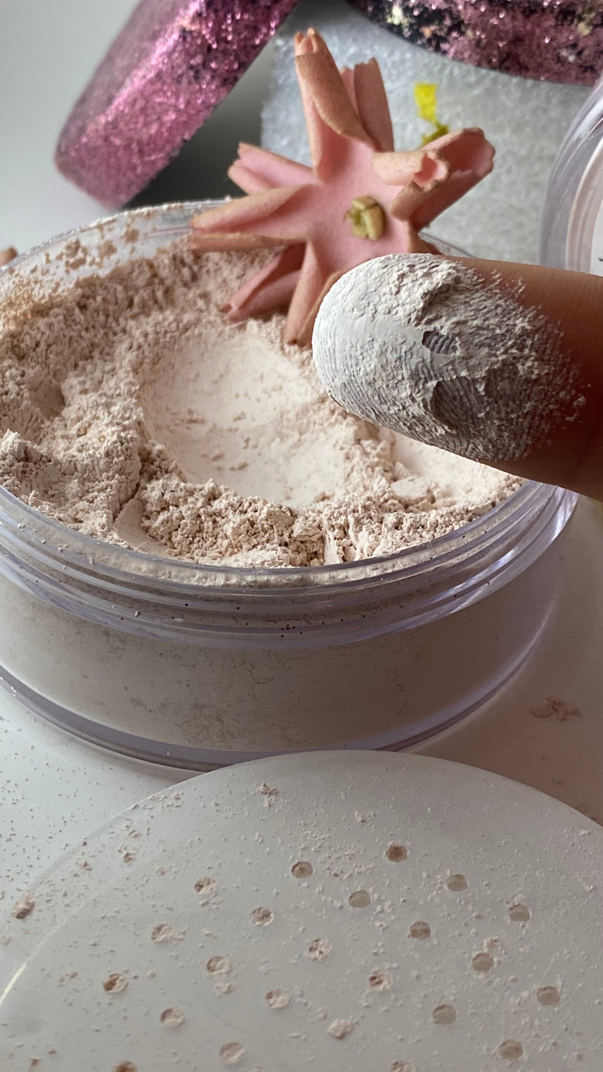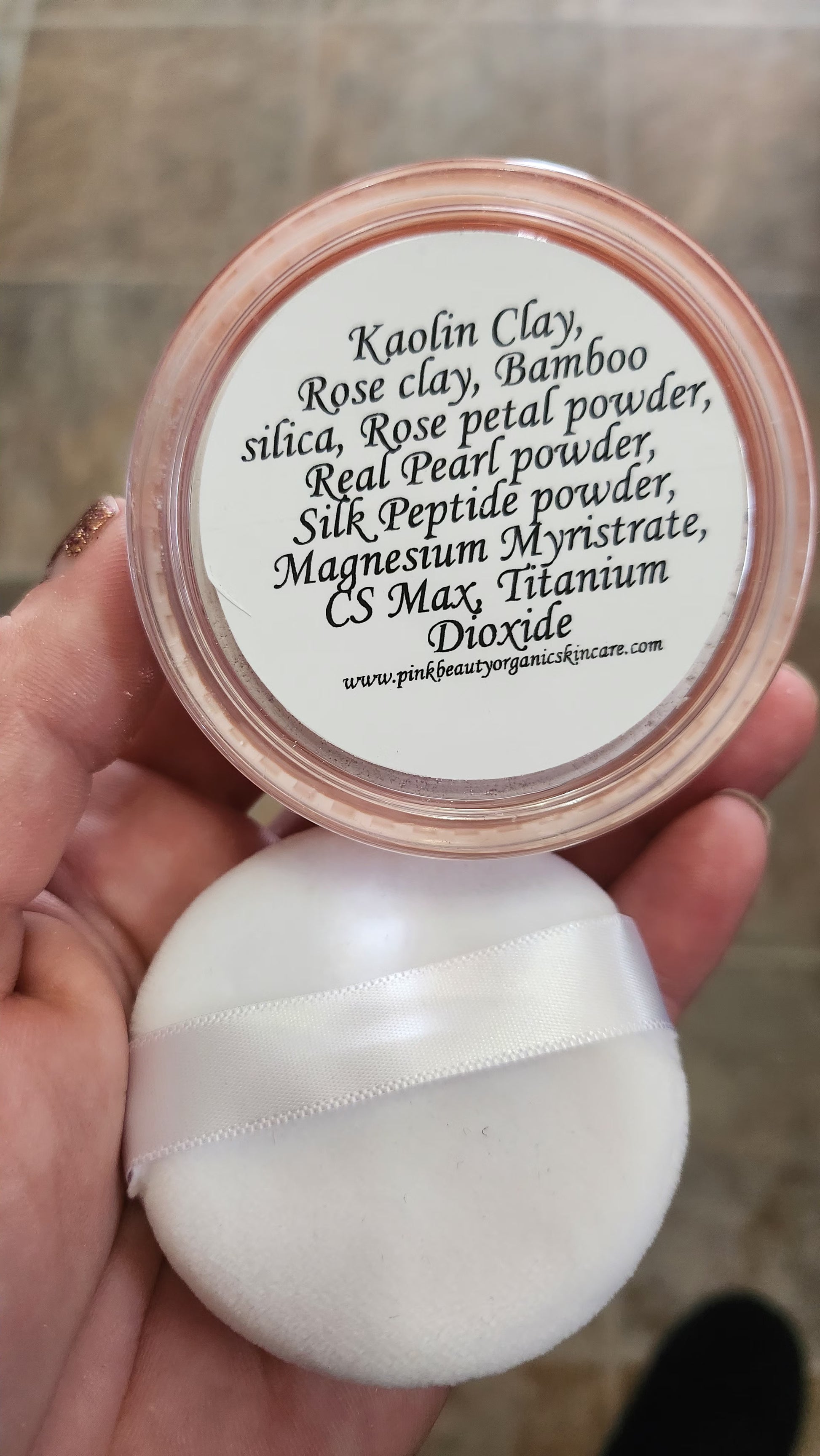Rose petal powder, botanical extract, Rosewater and kaolin clay are among the few natural ingredients you’ll find in this powder. The real Pearl powder mattifys the skin reduces redness and pore appearance. It contains organic silica for smooth soft touch and rose petal powder to reduce redness in the skin.  This weightless formula really covers well. And smells great 👍