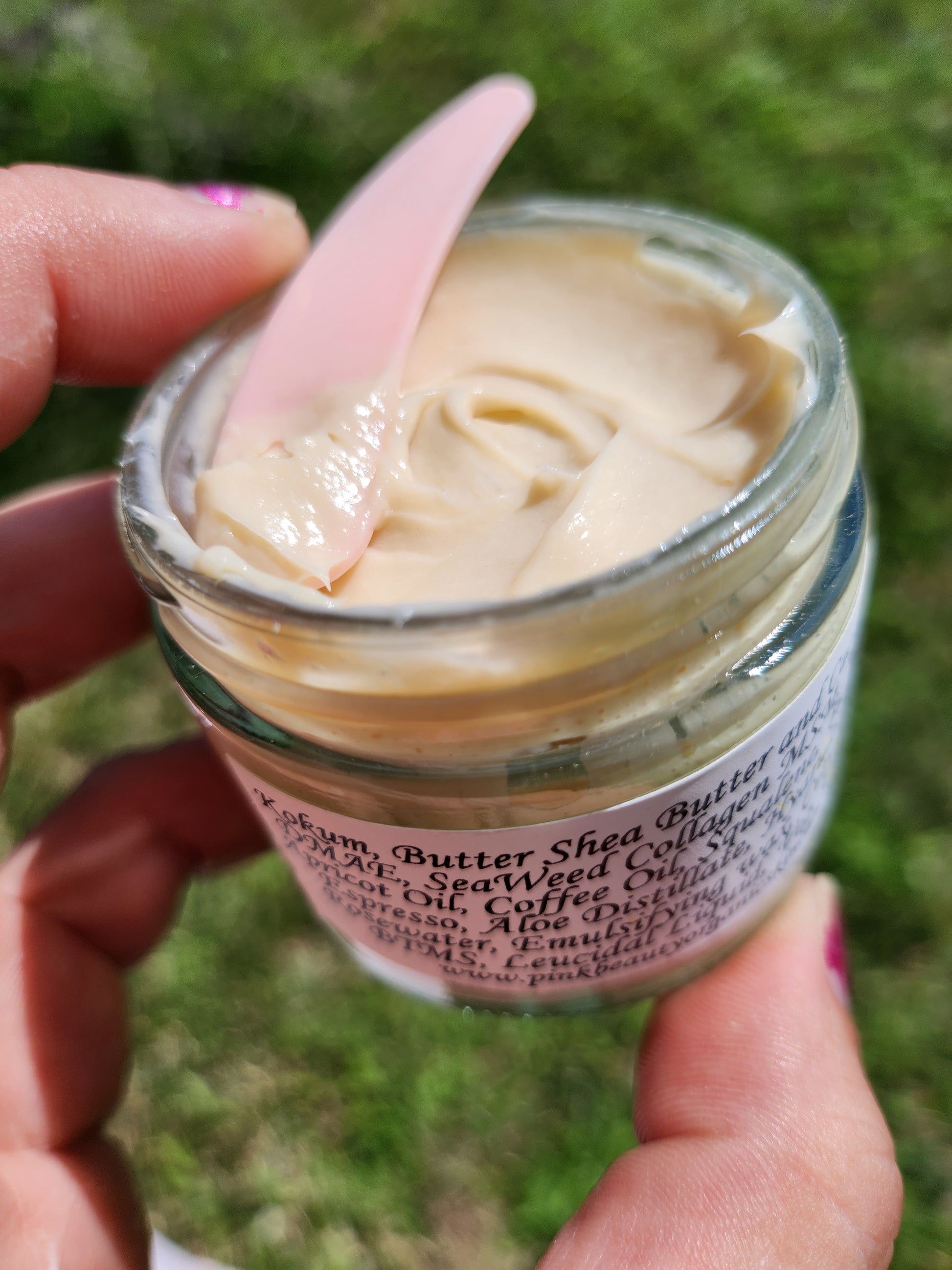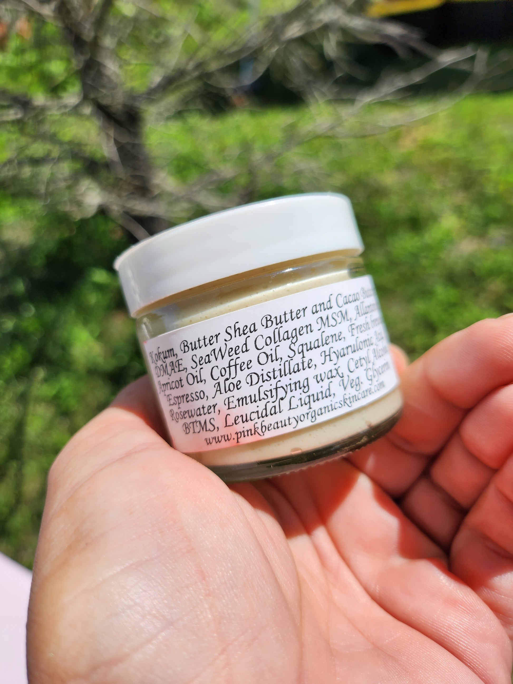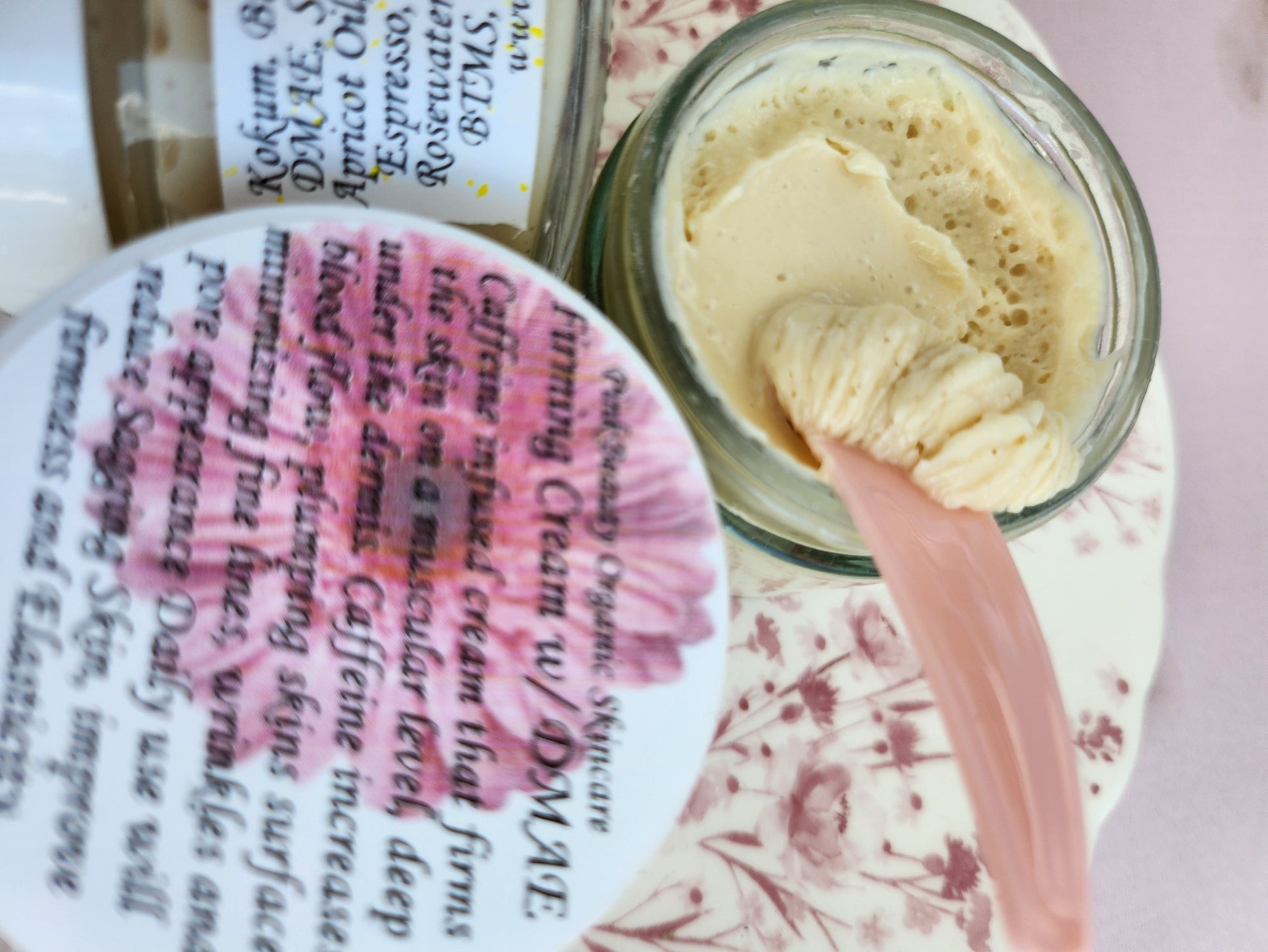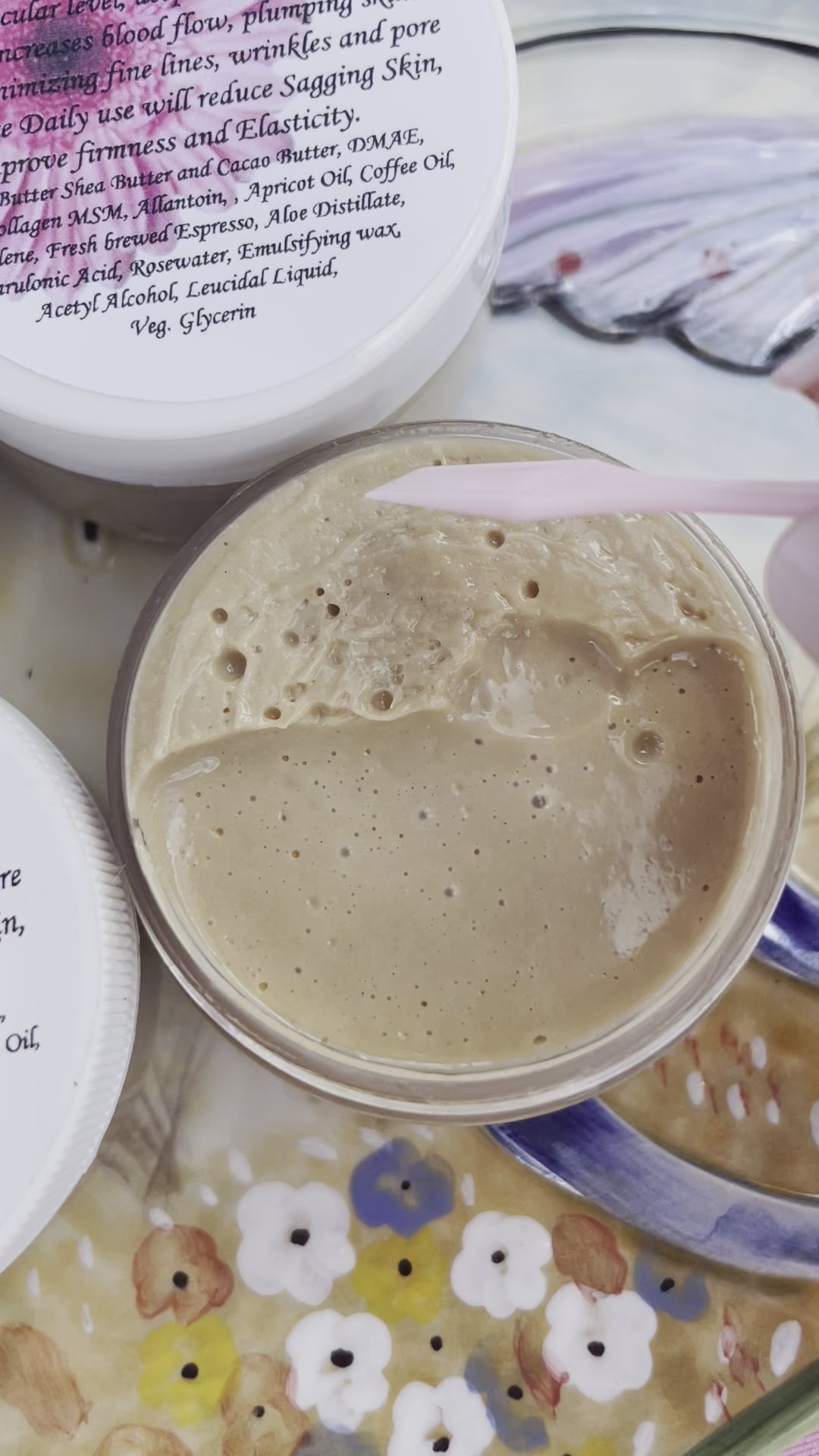 DMAE is known for its uncanny Proven ability to tighten & firm, tone and clarify the skin. It’s texture is airy yet dryer then the majority. This cream Also has a light has a coffee scent due to the espresso & coffee oil.