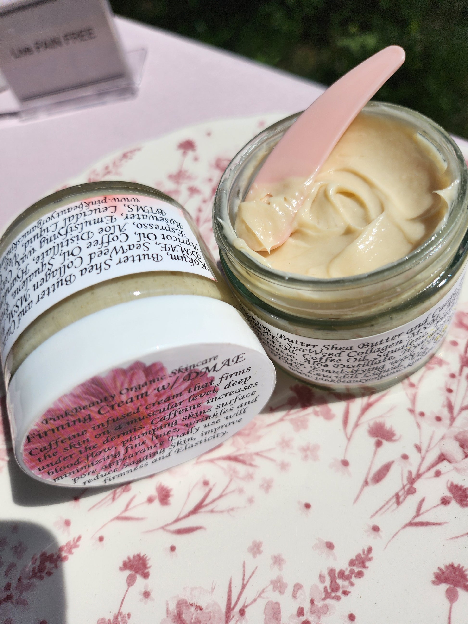 This is a cream and incredibly concentrated serum all in one.A Triple butter blend infused with antioxidants, caffeine, collagen, DMAE and MSM. You can use it head to toe to tone any area of the face or body. Now with Ceramides, Ceramides help restore the skin's barrier, which can help prevent dryness, irritation, and other skin concerns.