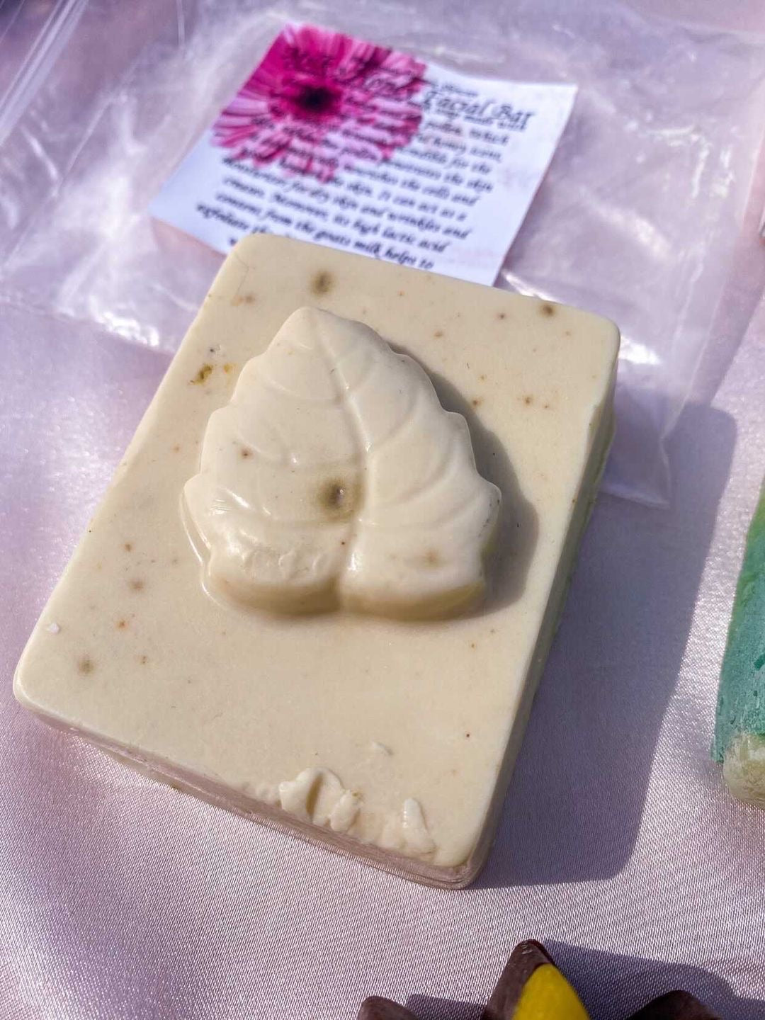 Ingredients: Goats Milk, Bee Pollen, Honey, Distilled water, Sunflower oil, Coconut oil, Olive oil, sodium hydroxide (makes soap)