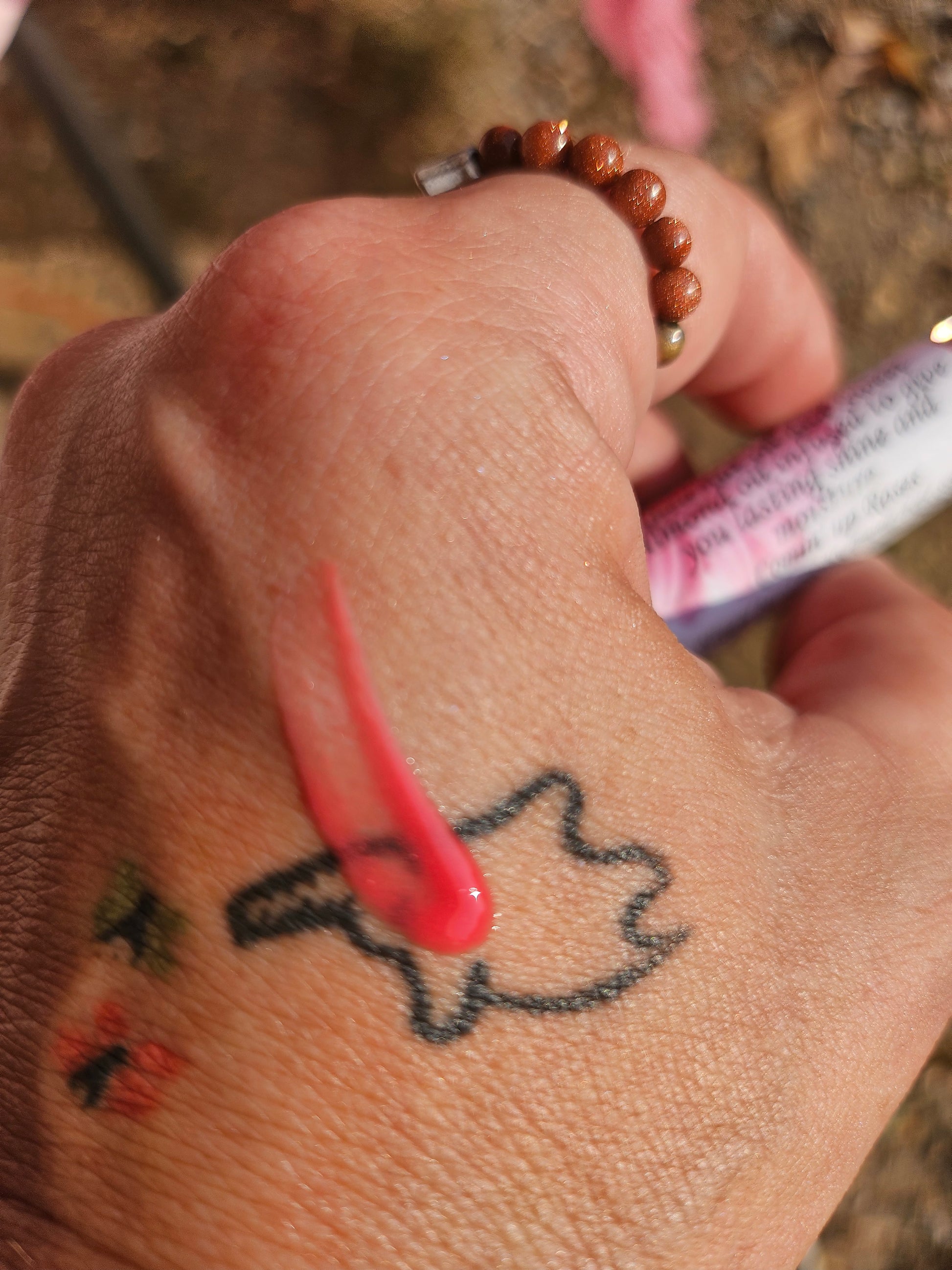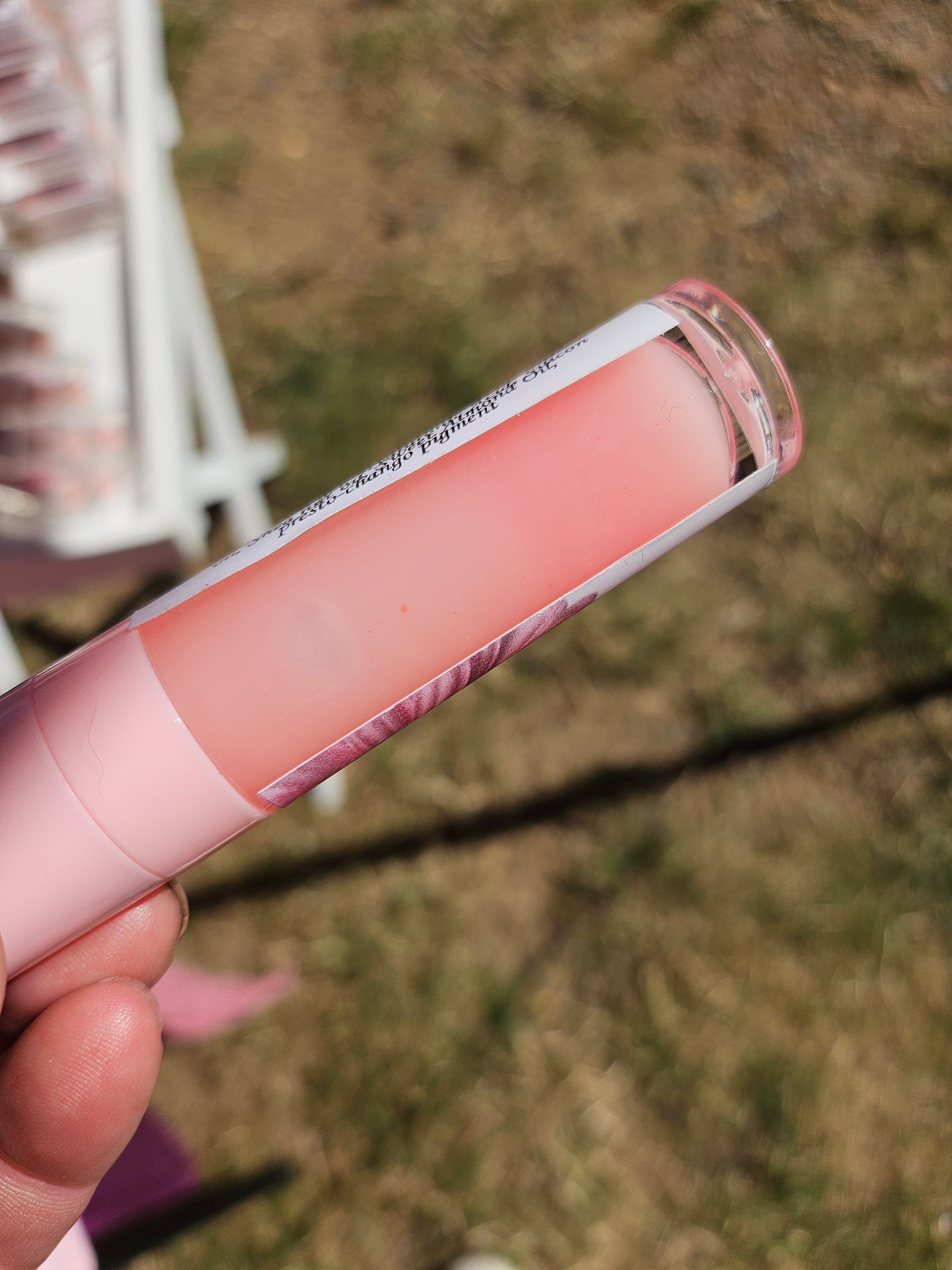 A wonderfully scented (like passion fruit) sheer gloss is unlike any other lip gloss you've used. The blend of hyaluronic Acid, almond oil and Shea nut oil give it almost a oil like texture. The hyaluronic Acid insures that your lips stay hydrated for hours. Long past the sheer color fades.