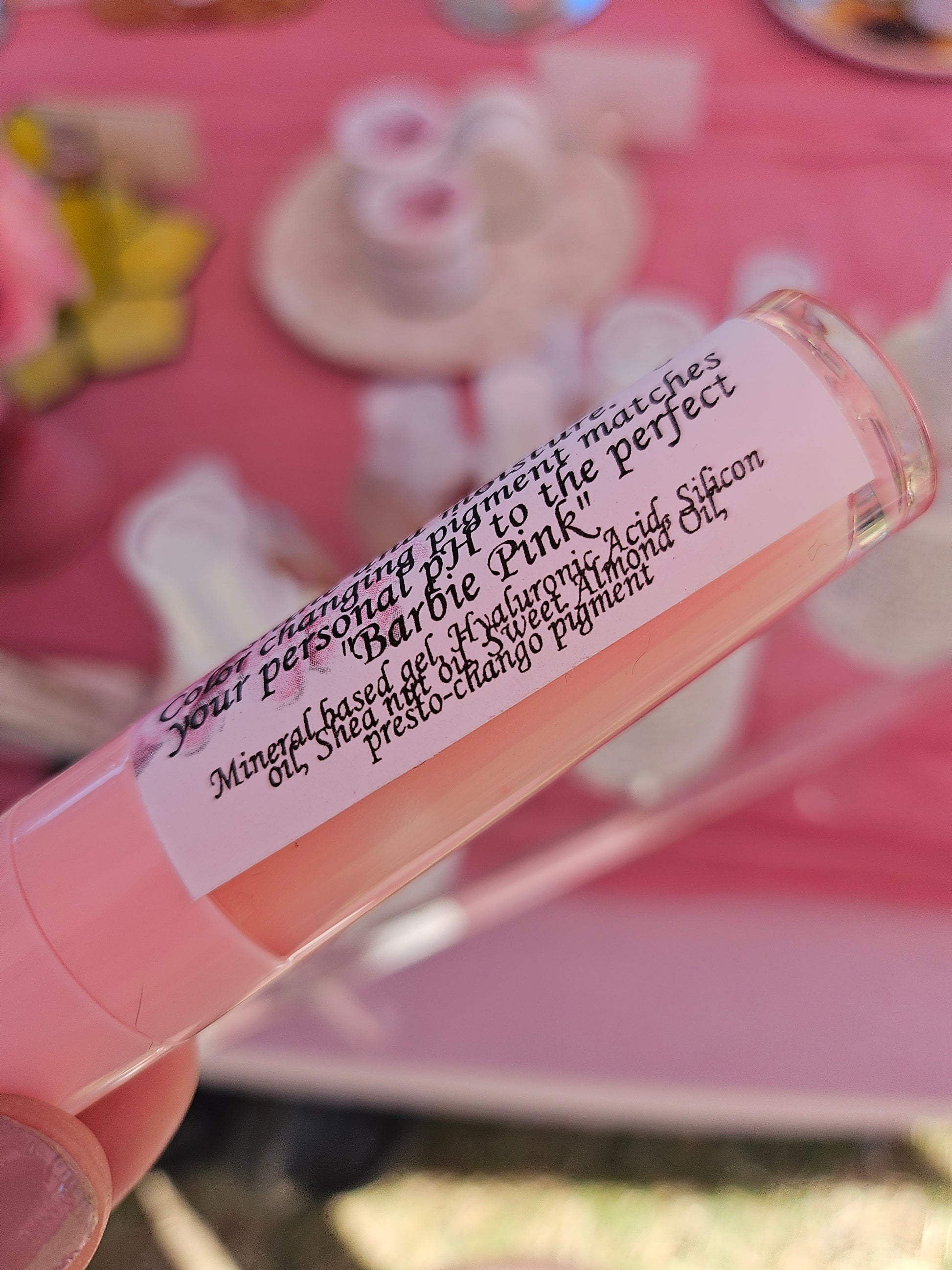 The "Barbie Pink" is a LIP STAIN this lasts until cleaned off the lips. The glossy fades leaving the lips beautifully vibrant pink. It's pH balanced to match your skin tone. Your Barbie Pink is slightly different from my Barbie Pink, but either way, it'll be a stunning pink.