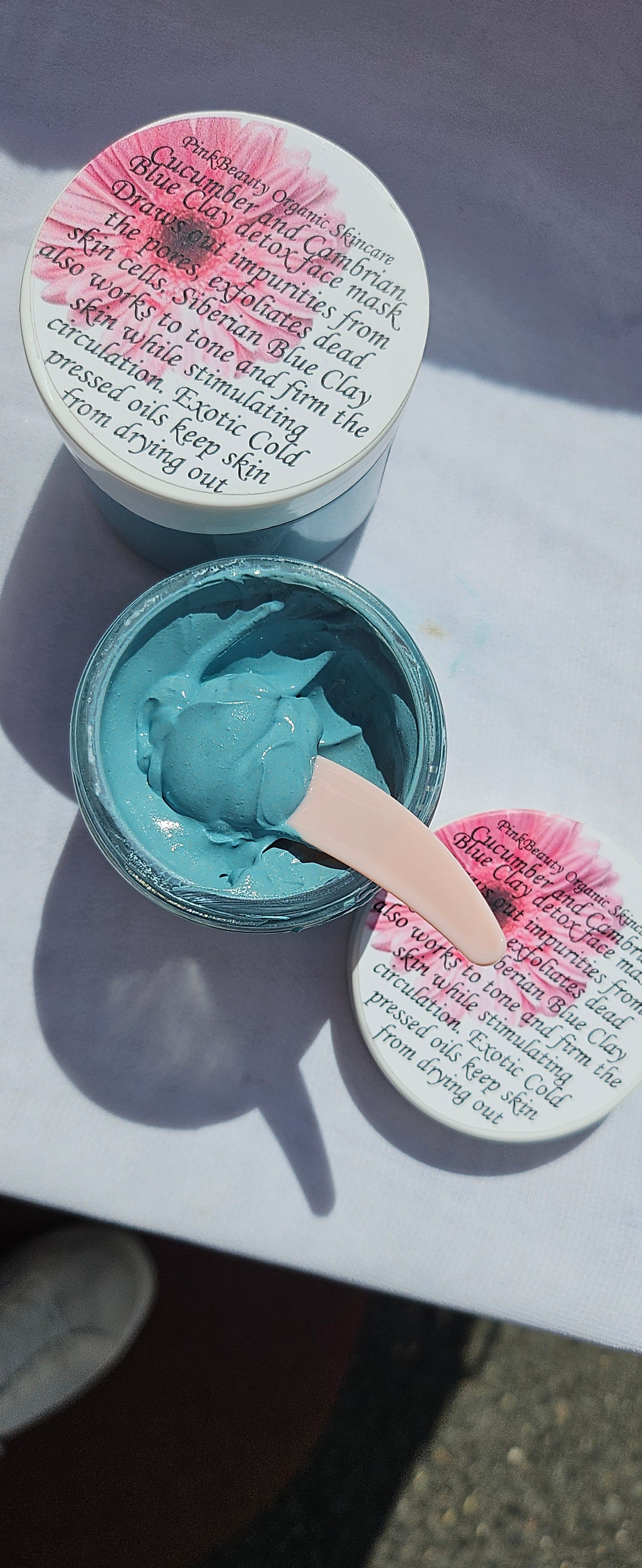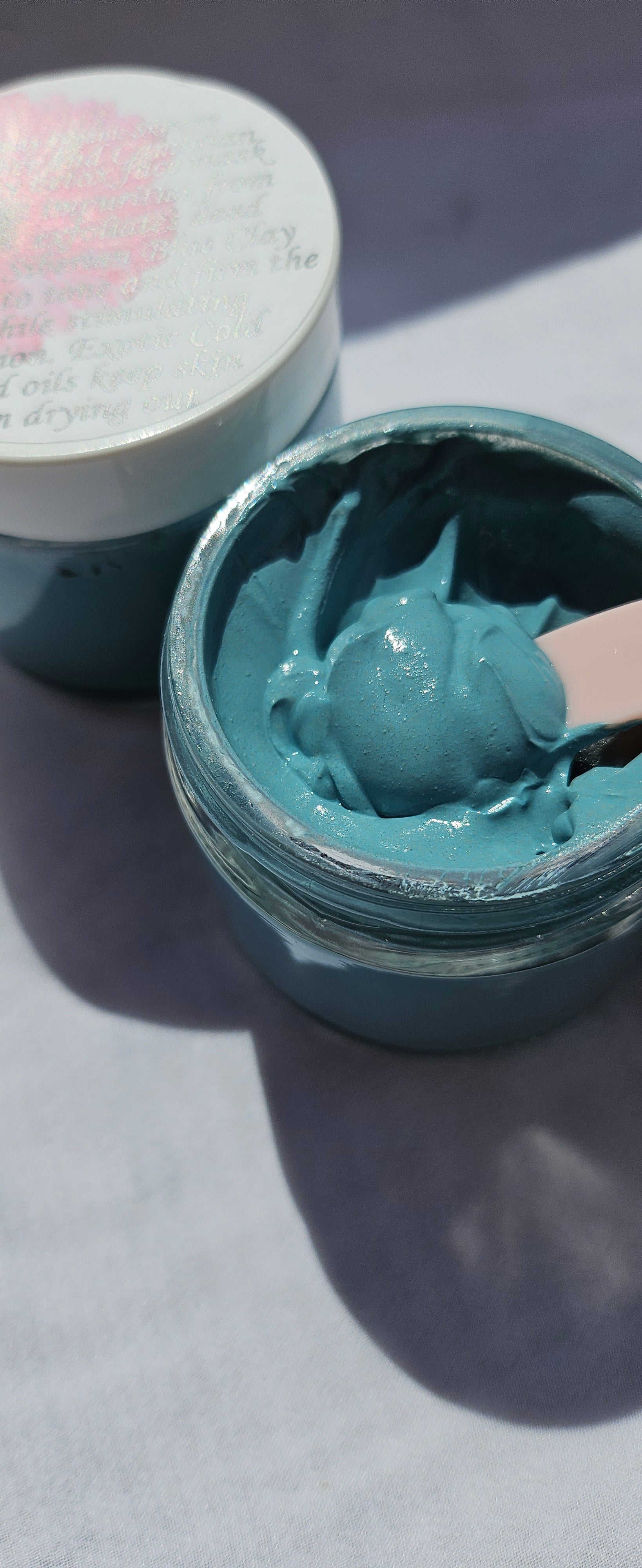 Siberian "Cambrian " blue clay  Cambrian blue clay contains minerals such as calcium, iron, magnesium, and zinc that help nourish and regenerate the skin.  Cambrian blue clay can help improve skin elasticity and reduce wrinkles. Cambrian blue clay has detoxifying properties that help flush toxins from the skin's surface.  Cambrian blue clay has natural healing properties that can help heal skin issues like acne, pimples, and blemishes. Cambrian blue clay contains magnesium and calcium, which can help firm the skin. Cambrian blue clay has pore reduction properties. Cambrian blue clay can help rejuvenate the skin and cells.
