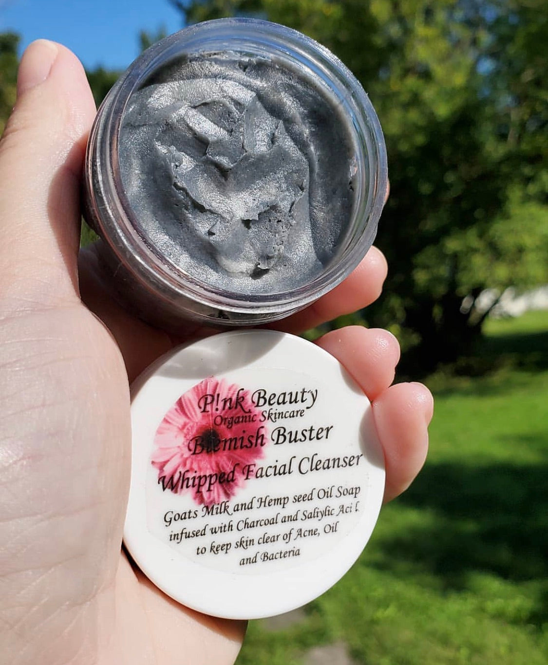 Our Best Selling, most REPURCHASED product has to be my whipped facial cleanser. The Blemish Buster! A Goats Milk and Hemp oil soap blend that's whipped to perfection; infused with salicylic acid, charcoal, lavender, tea tree oil & aloe Vera.